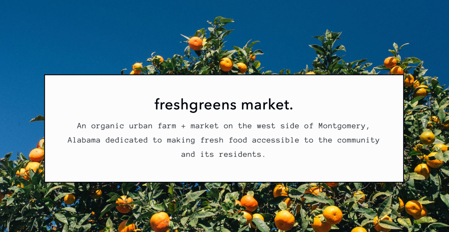 FreshGreensMarket is an organic urban farm and market on the west side of Montgomery, Alabama dedicated to making fresh food accessible to the community and its residents. It is now our time. We stand in the legacy of our ancestors and we take this work very seriously. We have answered their call by creating FreshGreensMarket and the Legacy Community Garden.